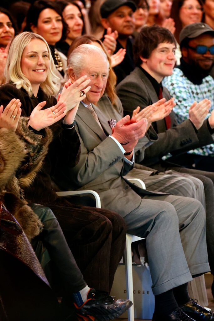 The King’s appearance is being widely interpreted as a strong show of support for British fashion, particularly emerging and independent designers. Charles has long championed sustainability, craftsmanship, and heritage industries, and his presence at Coker’s show aligned with those values.